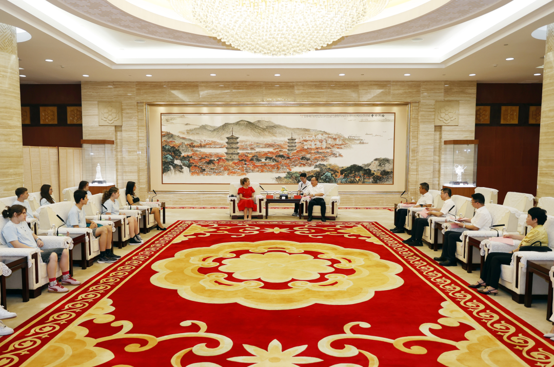 10月9日,市长蔡战胜、副市长姚飞会见了代表团一行。蔡战胜对代表团的到来表示欢迎,并介绍了泉州的经济社会发展情况,期待以此次青少年交流活动为契机,进一步深化两地文化交流、经贸合作等,共创泉加友好新篇章。内维娜·米涅娃对泉州的热情接待表示感谢。她表示此次交流活动让代表团深入感受泉州的文化宝藏与非凡成就,巩固了中国与保加利亚人民之间的友谊之桥。