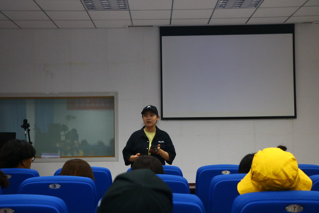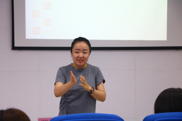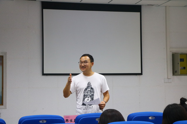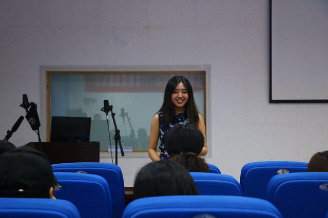 副教授韩佳蔚以“普通话的吐字要求”、“普通话过级考试评分细则”以及“如何在短时间内提高成绩”为在场同学提供准备普通话过级考试的建议。她说道:“普通话不仅要说流畅,还要说得标准和规范。更多的字、词的读法需要大家在日常生活中的积累。”她建议同学们回归到大一所学的吐字发声的训练要求,并且要注意主谓宾与定状补的搭配,在日常生活中尽量不说方言。