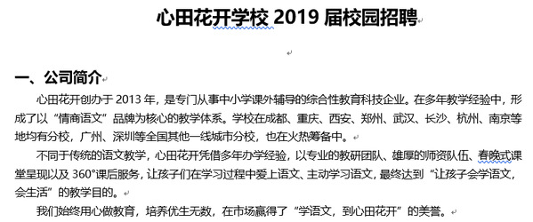 宣讲单位:重庆市渝中区心田花开课外培训中心有限公司