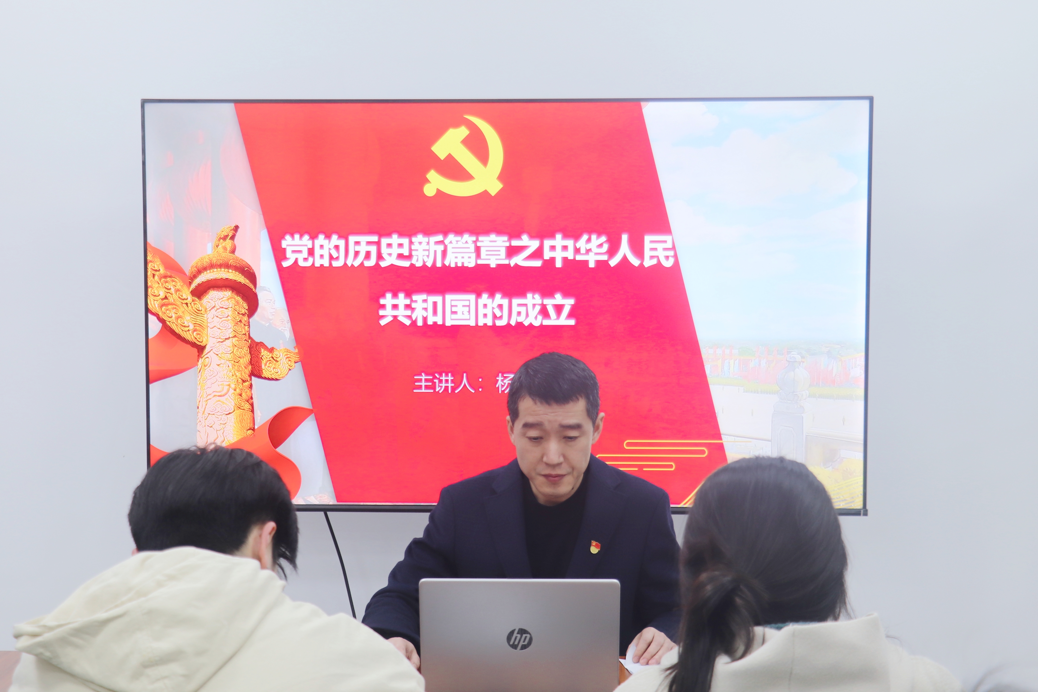 (通讯员:杨佳欣)为了拓宽党员的学习渠道,提高党员的学习效率,增强党员的党性觉悟。3月14日晚上七点,国产探花 在学生社区综合服务中心党团活动区开展以“党的历史新篇章之中华人民共和国的成立”为主题的党组织书记微党课,国产探花 党委副书记杨戈军担任本次活动的主讲人。