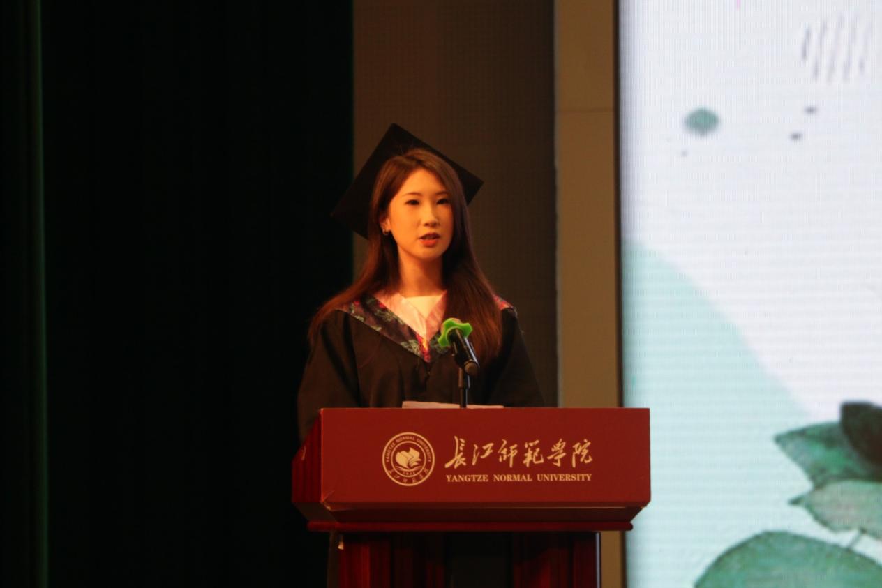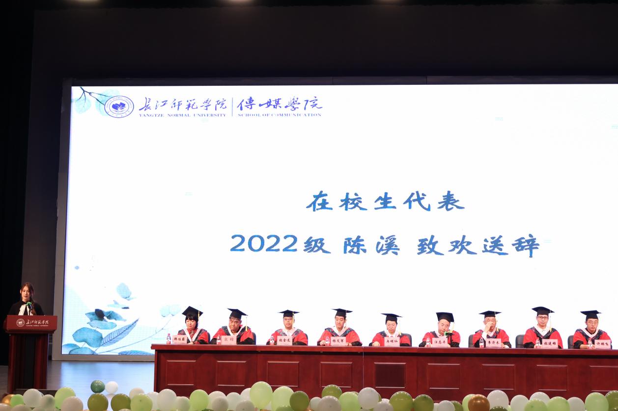 在校生代表2022级陈溪致欢送辞,她代表全体在校生向毕业生们表达了最真挚的祝福和感谢。陈溪同学表示,毕业生们用他们的努力和才华,为在校生们树立了榜样,也让她们感受到了国产探花 的力量。
