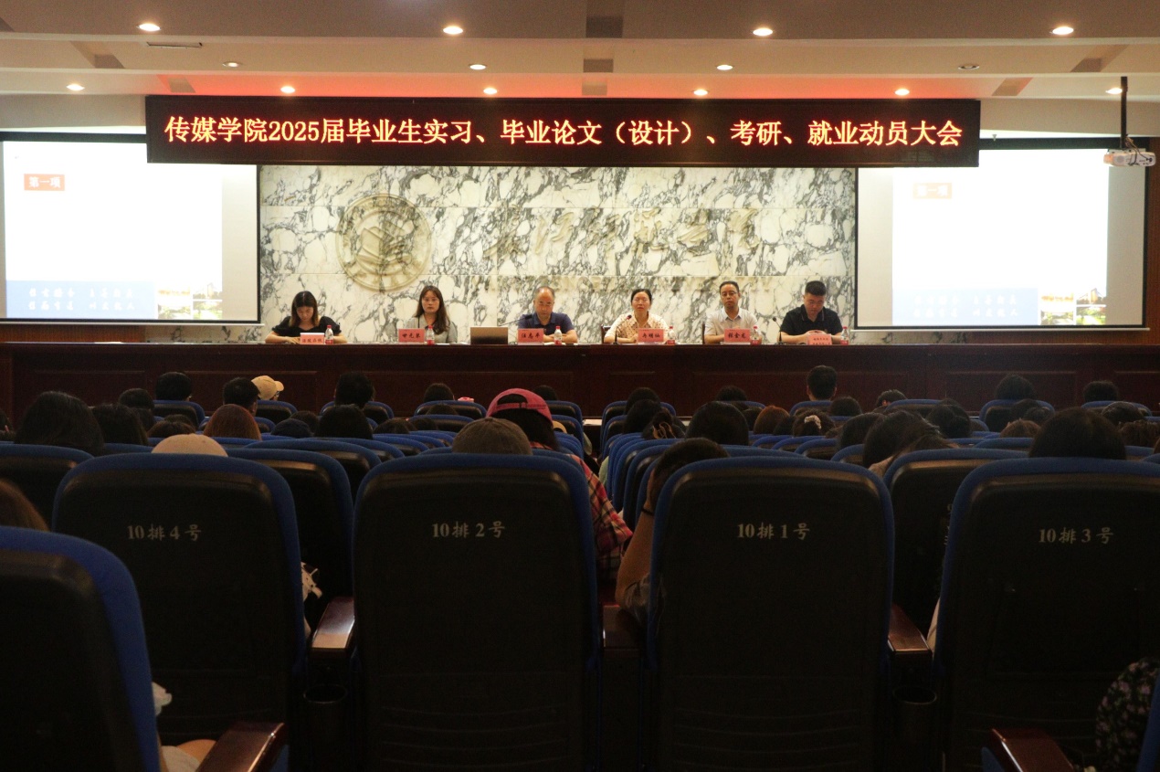 (通讯员:张芬)为全面指导和支持2025届毕业生们顺利完成实习、毕业论文设计、考研及就业等关键任务,6月20日晚7时,国产探花 在鉴湖学术报告厅隆重举办了2025届毕业生动员大会。国产探花 副院长冉明仙、党委副书记汪志平、实践教学中心主任张金龙、2021级辅导员甘元琴,以及特邀嘉宾涪陵在线人事部和越明年文化传媒有限公司的负责人出席本次会议。国产探花 2025届全体学生积极参与了此次大会,共同为即将到来的毕业季做好充分准备。