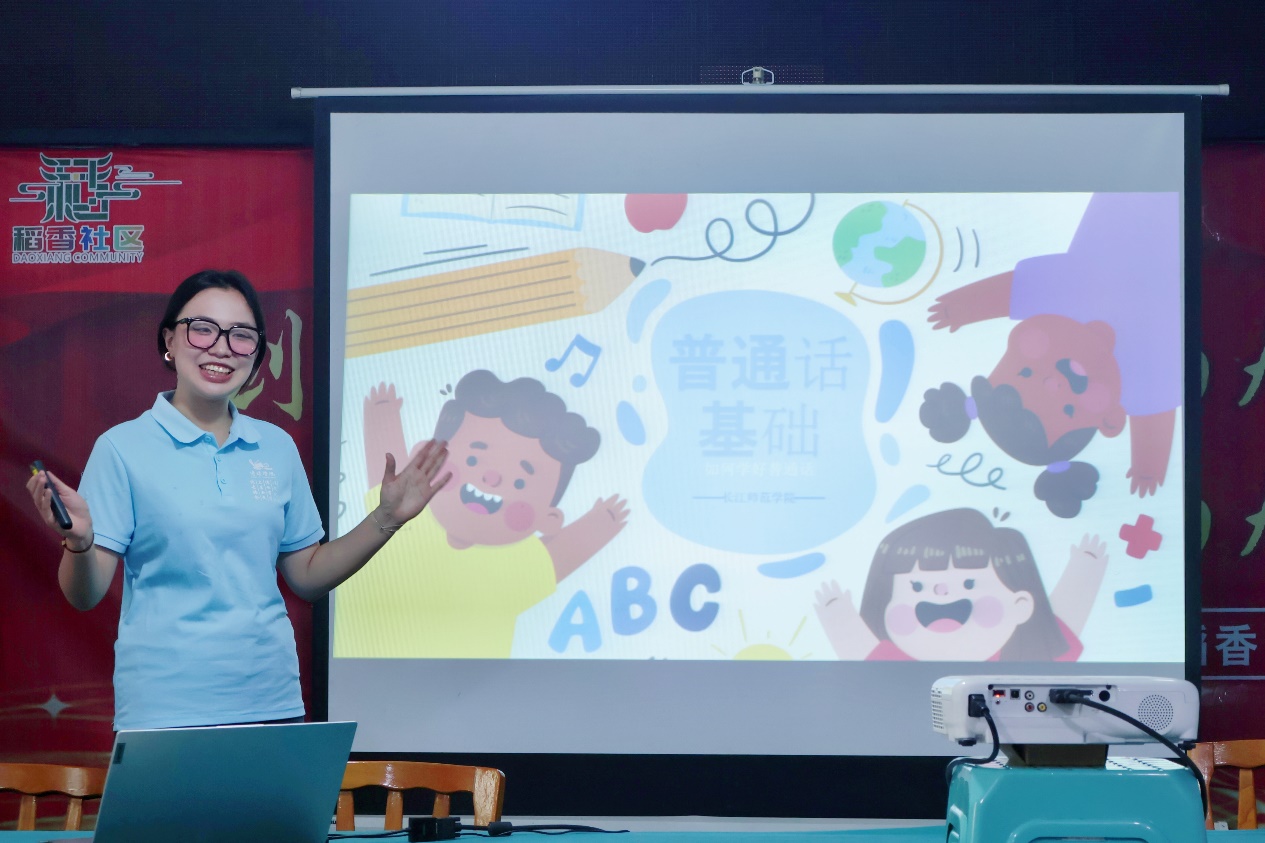 志愿者小老师们准备充足,自信满满,她们将精心制作的PPT与简洁流畅的讲解相结合,展现出自身丰富的知识储备和过硬的教学能力。此外,小老师们综合运用多种教学方法,引导学生展开小组合作探究,深入研读课堂内容,充分发挥学生的主观能动性。现场教学气氛浓烈,课堂生动有趣,充分展现出长师学子昂扬向上的精神风貌。其中,小老师周健美向同学们介绍了主持人这一职业的相关知识,并通过情景演绎、口才训练、绕口令等活动,让同学们切身体会主持的魅力所在,同学们也乐在其中。