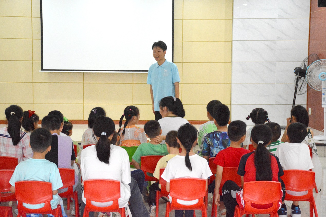 “把那牛和羊群放在那片山坡上,好久不见阿普,你是否别来无恙……”志愿者们带领小朋友们正在进行《阿普的思念》歌曲教学,在悠扬的童声合唱中,本次教学活动正式拉开序幕。