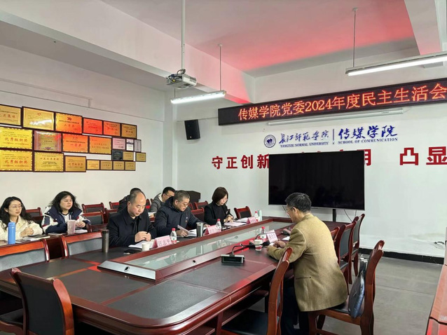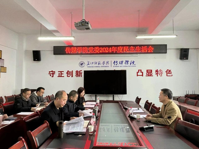 2025年2月28日下午,传媒学院党委在格致楼2313会议室召开2024年度民主生活会。学校党委常委、宣传部部长盛全生同志全程参加督导、指导,学院全体领导班子成员参加,科级以上干部及各党支部书记等列席。会议由传媒学院党委书记谢诗茂同志主持。