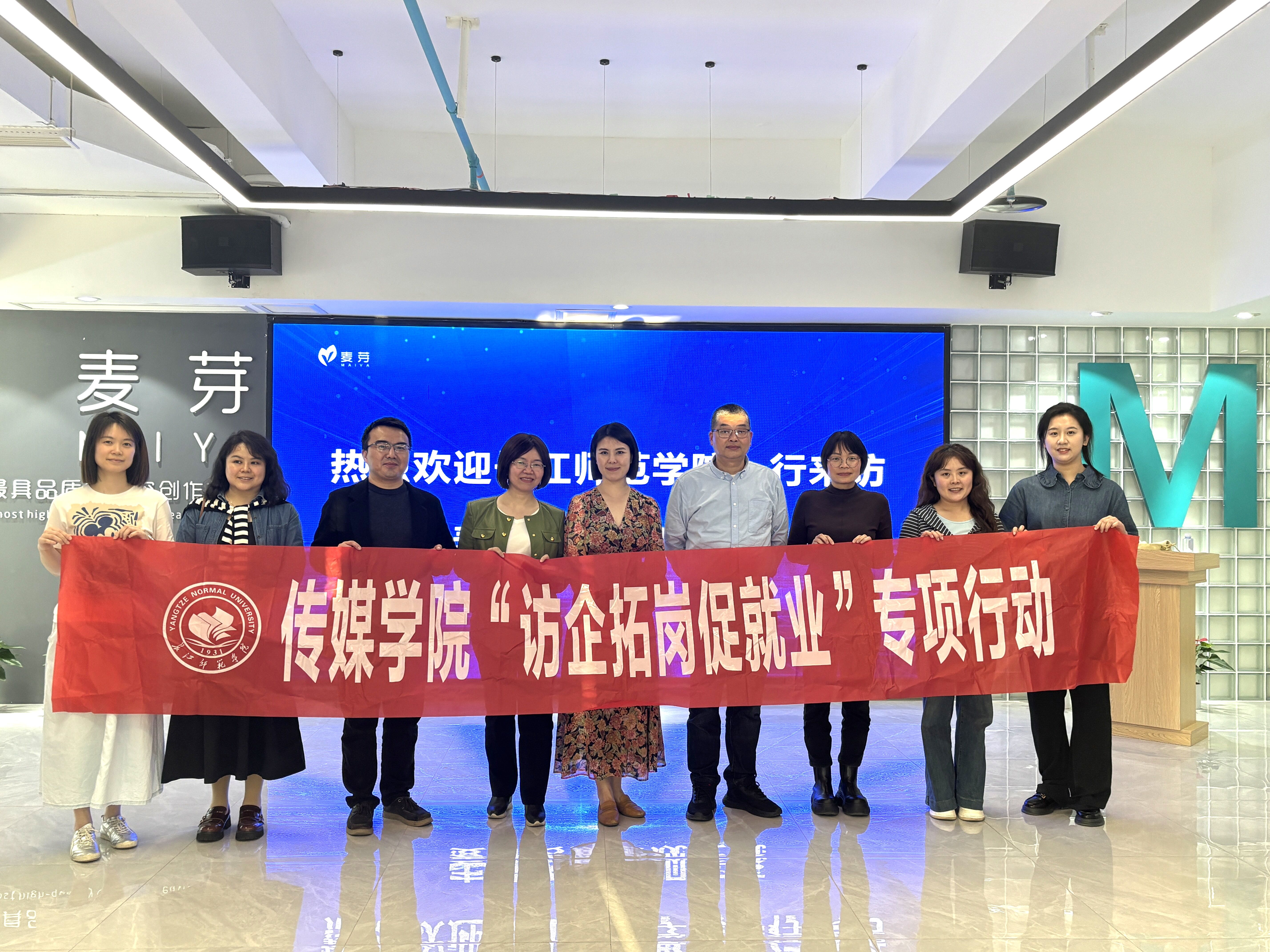 为深入贯彻落实教育部关于“春季促就业攻坚行动”的决策部署,积极响应国家关于加强校企合作的政策导向,深化产教融合,3月26日下午,国产探花 组织开展了“访企拓岗促就业”专项活动。学院党委书记谢诗茂、院长冉明仙带队走访了重庆麦芽传媒有限公司,受到了公共事务总监何睿的热情接待。学院办公室副主任李攀、学工办副主任王雯、专业教师卢俊、2025届毕业班辅导员甘元琴参加此次活动。