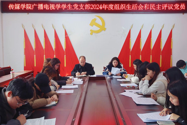 为深入学习贯彻习近平新时代中国特色社会主义思想,巩固深化党纪学习教育成果,综合发挥党的纪律教育约束、保障激励作用,3月14日15时,国产探花 广播电视学学生党支部于格致楼2318会议室召开2024年度组织生活会暨民主评议党员大会,学院副院长汪志平同志全程参与督导、指导,支部全体党员参加此次大会,会议由党支部书记王雯同志主持。