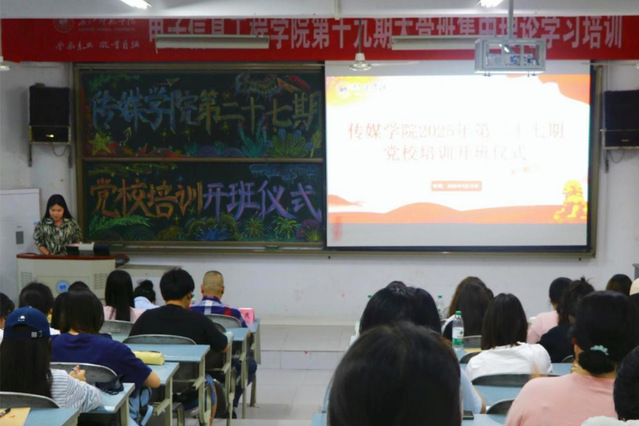 学院党委书记谢诗茂围绕“传承红色基因,勇担时代使命”向学员们提出三点希望:一是坚定理想信念筑牢思想根基;二是锤炼过硬本领,践行传媒担当;三是严守纪律规矩,树立先锋形象。他勉励学员珍惜机会,深入学习理论知识,提升修养,发挥先锋模范作用。