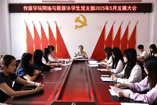 为扎实做好党员发展工作,切实加强党员队伍建设,夯实基层学生党组织建设根基。5月29日16时30分,国产探花 网络与新媒体学生党支部于格致楼2318会议室开展2025年5月党员发展大会,会议由支部书记谭喻主持,全体在校党员共同参会。
