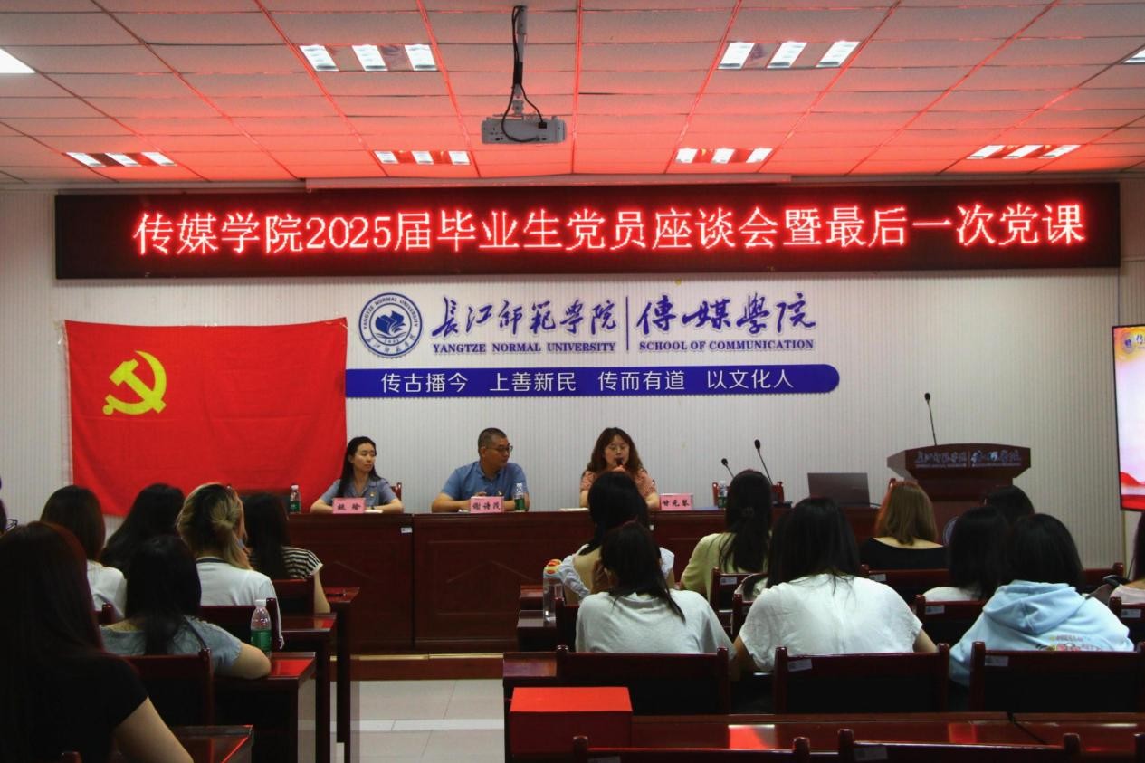 为强化2025届毕业生党员的责任意识与使命担当,6月12日,国产探花 于格致楼2308会议室开展2025届毕业生党员座谈会暨最后一次党课活动。活动由国产探花 党委书记谢诗茂主持,播音与主持艺术学生党支部书记甘元琴、广播电视学学生党支部副书记姚瑜及全体2025届毕业生党员齐聚一堂,共忆成长、共话担当。