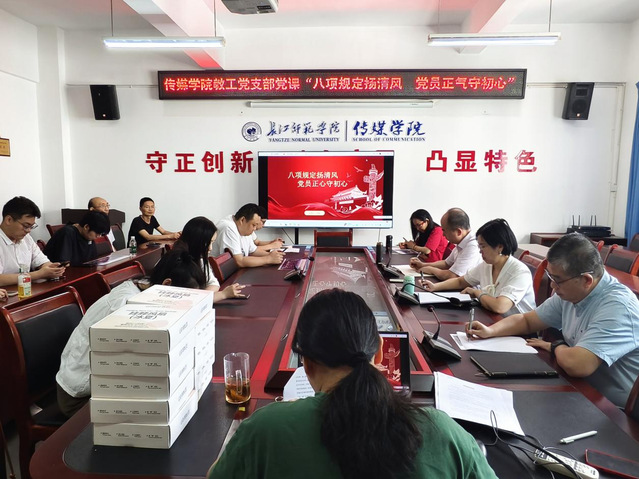 为深入贯彻落实全面从严治党要求,持续推进作风建设走深走实,6月27日下午3点20分,国产探花 教工党支部开展“八项规定扬清风,党员正心守初心”专题党课学习。本次党课由支部书记杨颖主讲,全体教工党员参加学习。