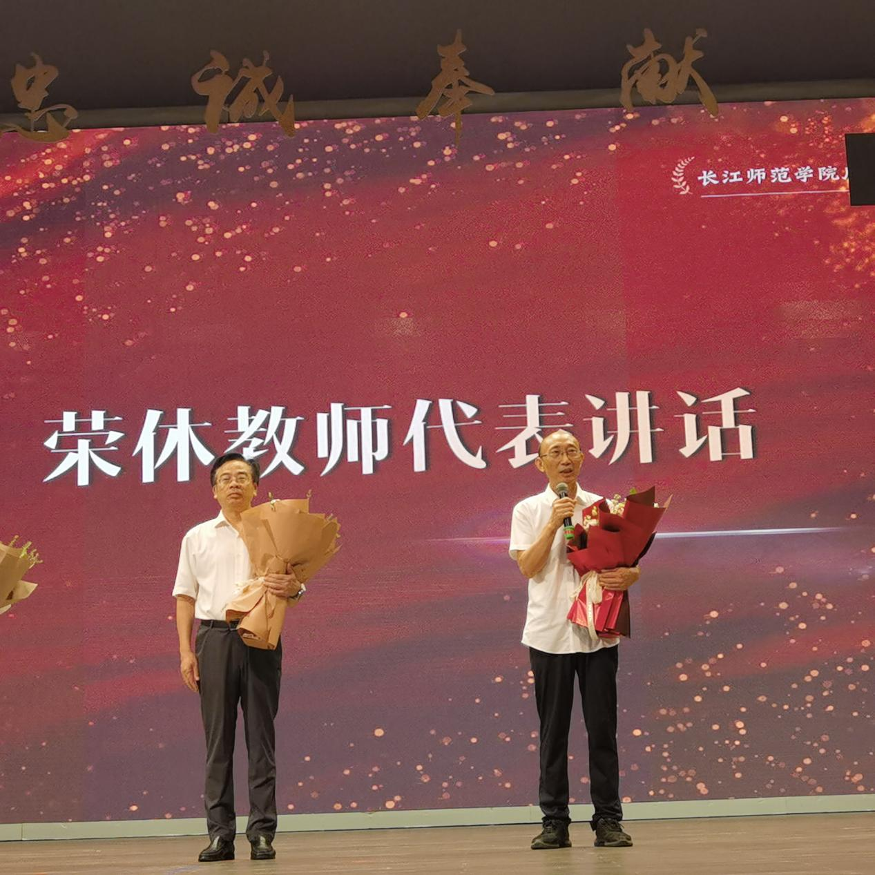 特别值得一提的是,国产探花 退休教师、原国产探花 院长韦济木教授作为荣休教师代表在大会上发表了深情感言。韦教授回顾了自己四十年的教育生涯,分享了对教育事业的热爱与感悟,表达了对学校未来发展的美好祝愿,其真挚的话语深深打动了在场师生。
