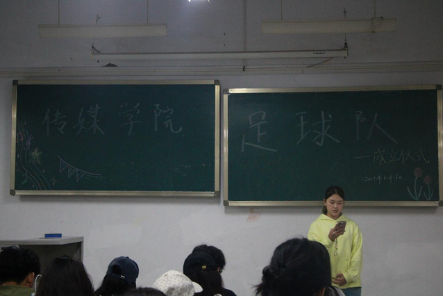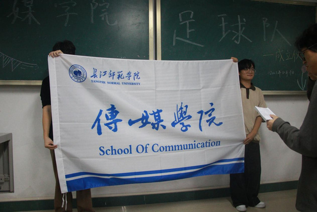 在成立仪式上,球队队员代表面向院旗庄严宣誓。队员们精神饱满,神情坚定,表达了将严格遵守纪律、尊重对手、团结协作、全力以赴捍卫学院荣誉的坚定决心。铿锵有力的誓言在教室回荡,展现了传媒学子昂扬向上的精神风貌和团结一致的团队精神。