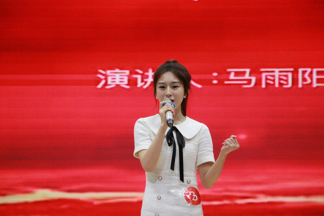 比赛进入中场后,演讲氛围逐显热烈,播音5班的黄家萁同学围绕《以青春之我,走好新时代长征路》展开演讲,生动阐释了英模“向前走”的纯洁信仰与“士可杀,不可辱”的赤诚之心,青年们在英模的榜样下要走好自己的新长征路。激励着在场听众,用故事展现了英模之范。