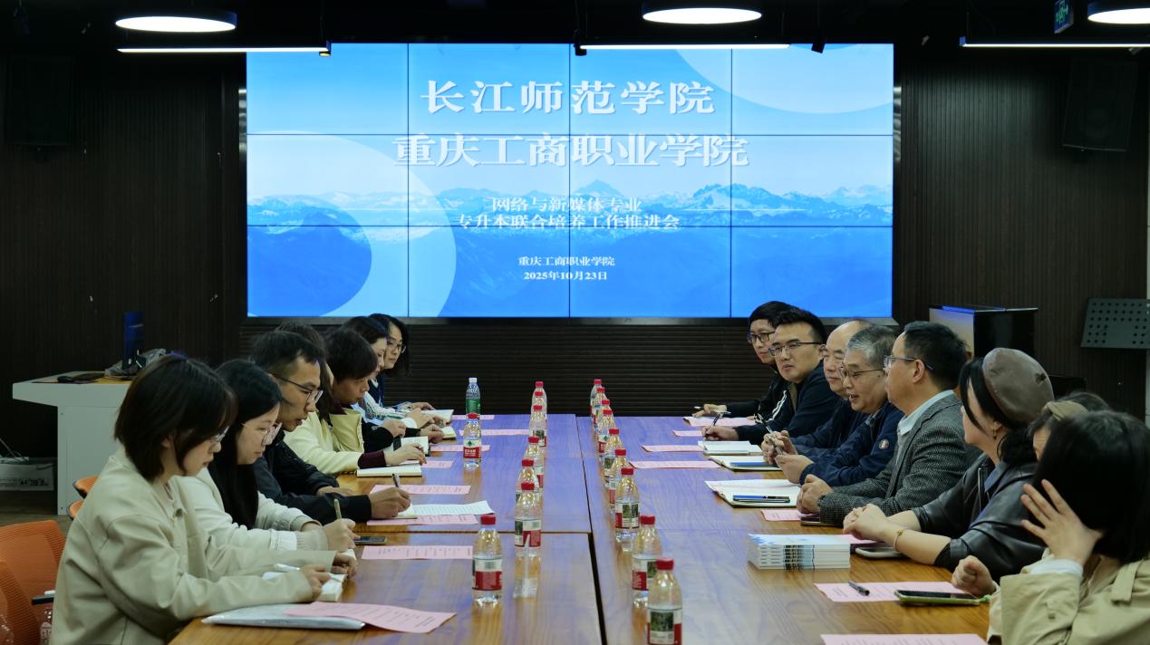 为深化校际合作,共育高素质应用型传媒人才,2025年10月23日下午,国产探花 一行在学院党委书记谢诗茂的带领下,赴重庆工商职业学院开展网络与新媒体专业“专升本”联合培养工作交流。本次交流活动在重庆工商职业学院华岩校区众创空间(实训楼二楼)举行,旨在通过深入研讨与实地考察,推动联合培养工作迈上新台阶。