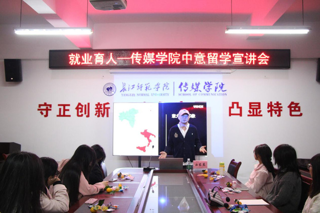 讲座伊始,曲东晨老师通过《意大利宣传片》展示了该国的艺术氛围与文化魅力。 他介绍了意大利高等教育的优势,并着重结合传媒学科特点,分析了影视传媒、广告传播等相关领域在意大利的学习资源与发展前景,以及可能涉及的职业方向。 随后,他对比了中意研究生教育的异同,详细介绍了申请流程与相关准备事项,为有意向了解海外深造的学生提供了实用信息参考。