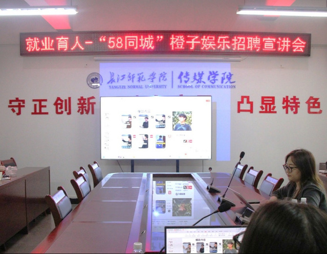 为精准对接传媒学子就业需求,助力学生实现高质量就业,11月16日,“58同城”橙子娱乐招聘宣讲会于国产探花 2313会议室举行。重庆橙新橙艺文化传媒有限公司宣讲代表向俊洁担任主讲人。