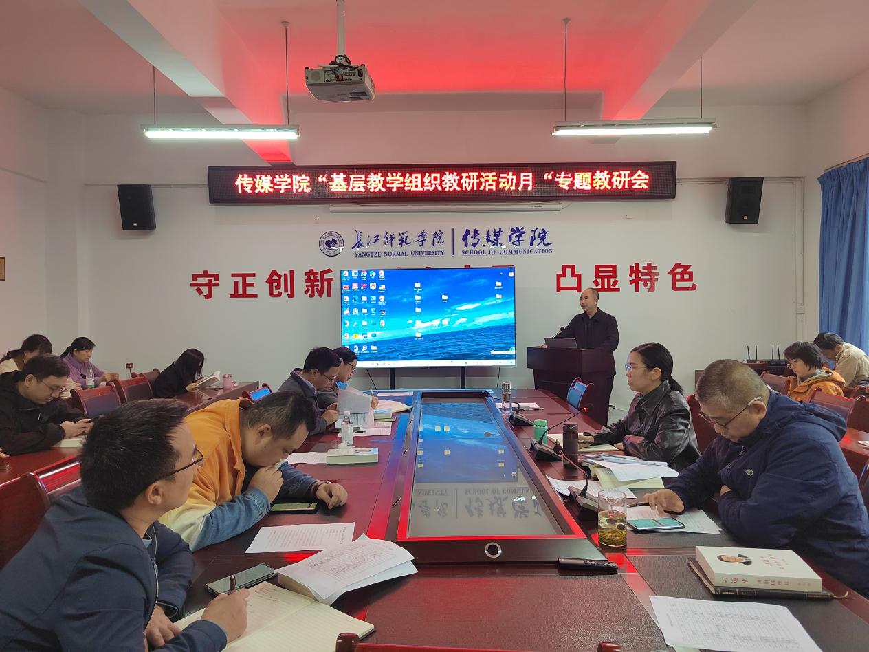 会上,汪志平副院长结合《国产探花 关于开展“基层教学组织教研活动月”活动的通知》精神,对传媒学院“基层教学组织教研活动月”实施方案进行了全面解读与具体部署。在11月,国产探花 将严格落实实施方案的活动内容,加强基层教学组织建设,切实激发学院的基层教学组织活力。根据方案工作推进的时间安排,高质量完成本次基层教学组织教研活动月活动,在学院营造“重视教学、研究教学、崇尚创新”的质量文化氛围,共同推动学院教学工作质量再上新台阶。