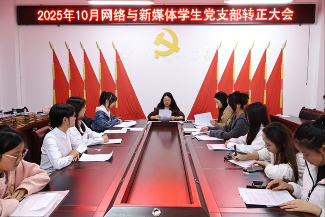 为进一步赓续党的精神谱系,强化组织引领青年的政治功能,激发新时代青年党员的先锋主体意识,培养更多优秀党员干部。10月30日18时30分,国产探花 网络与新媒体学生党支部于格致楼2318会议室开展2025年10月党员转正大会,会议采取线上线下相结合的方式进行。此次会议由支部书记谭喻主持,全体在校党员与预备党员共同参会。