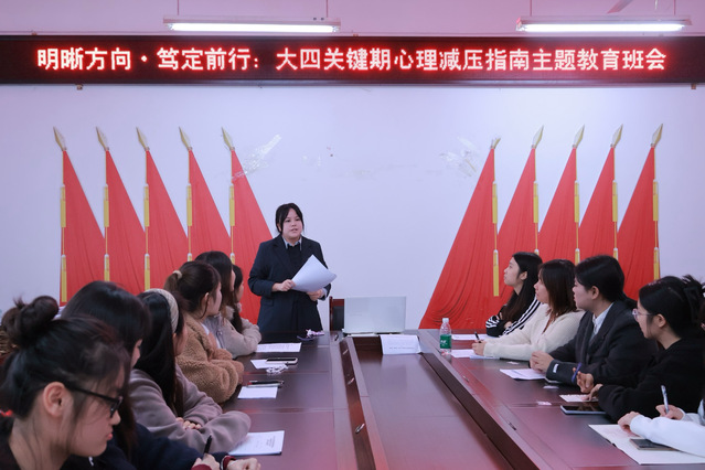 为帮助大四学子从容应对毕业季的学业、就业与情感等多重压力,以积极健康的心态规划未来、砥砺前行,国产探花 于10月31日成功举办了以“明晰方向·笃定前行”为主题的心理减压指南班会。
