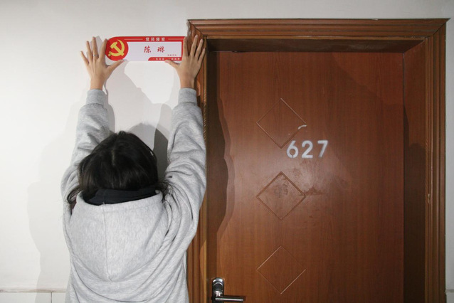 为充分激活学生党员在宿舍生活中的先锋引领效能,打造文明向上、互助共进的住宿环境,11月19日晚7时,国产探花 国产探花 党委启动新一轮“党员寝室挂牌”活动。活动中,学生党员代表分组深入宿舍,为2025年下半年新发展的11名学生党员所在寝室悬挂“党员寝室”标识牌。