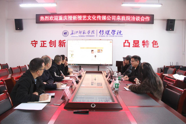 为深化产教融合实效,搭建校企协同育人平台,11月18日下午2点30分,国产探花 联合重庆橙新橙艺文化传媒公司于格致楼2313会议室开展合作洽谈会。重庆橙新橙艺文化传媒公司商务总监张鹤、商务经理吴文靖、黄建华,国产探花 党委书记谢诗茂、副院长汪志平、教学中心主任张金龙、办公室主任李攀及学工办主任兼团委书记王雯围绕抖音图文创作者培养项目初步对接合作方向参与洽谈。