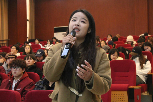 互动交流环节氛围热烈浓厚,学生代表踊跃登台,诵读经典散文、诗歌片段。陈力老师对每位学生的表现进行精准点评,既肯定了大家的语言天赋与情感投入,又聚焦发音咬字清晰度、节奏把控层次感、情感传递真挚度等核心问题,开展靶向指导:通过调整气息位置破解“气息浮浅”难题,通过标记重音停连优化“节奏失衡”问题,通过模拟场景代入弥补“情感共鸣不足”短板。学生们认真聆听、实时调整,在一对一实操指导中快速找准提升方向,现场掌声持续不断,学习氛围十分浓厚。