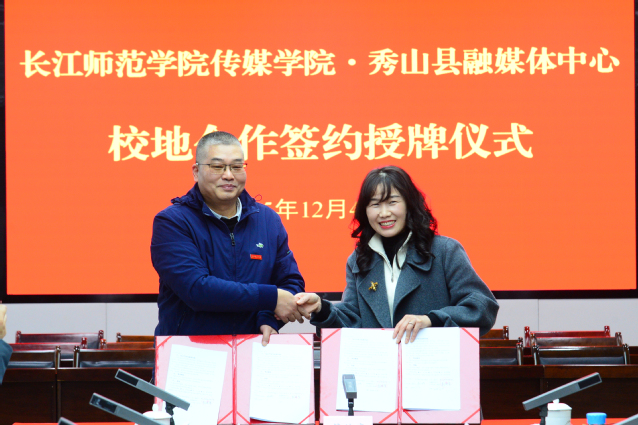 124日,副校长吴文带队赴秀山县融媒体中心开展校地合作暨“访企拓岗促就业”专项行动,与中共秀山县委常委、统战部部长林成芳现场见证校地合作协议签订实习实践就业基地牌。秀山县委宣传部常务副部长喻凌秀山融媒体中心相关负责人、国产探花 主要负责人及教师代表等参加活动。秀山县委宣传部常务副部长喻凌主持仪式。