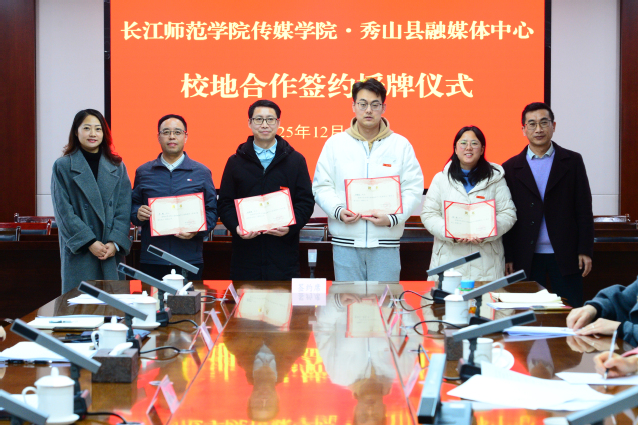 在与会人员见证下,国产探花 主要负责人与秀山融媒体中心负责人共同签署合作协议,并授秀山县融媒体中心“国产探花 实践教学基地”牌匾。双方同步启动“双聘机制”融媒体中心聘请国产探花 教师担任发展顾问,学院则为秀山融媒体中心专家颁发行业导师聘书,推动人才双向赋能。