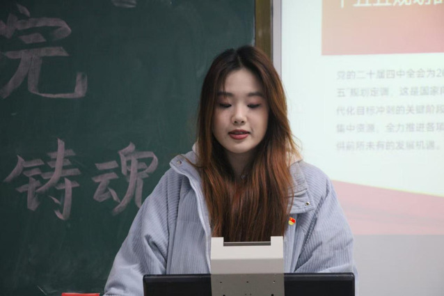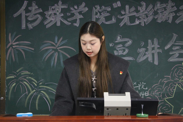 宣讲会期间,“光影铸魂”宣讲团成员吕思文围绕全会“加快发展新质生产力”相关内容展开讲解,结合传媒行业人工智能应用等案例,让同学们清晰认识到行业融合发展的趋势,也明白了作为传媒学子需主动关注技术前沿、提升专业能力的必要性。随后,宣讲团成员王澜萁同步分发学习提纲并提醒标注重点,在她的辅助下,同学们快速抓取宣讲核心,高效跟进学习节奏,把握理论关键,加深对内容的理解。