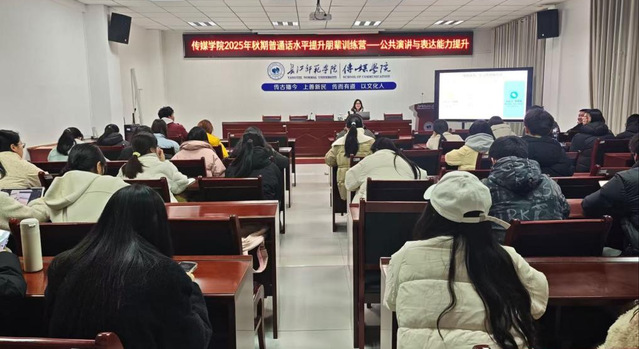 为进一步提升学生的语言表达感染力,推动普通话表达能力从“敢说”向“会说”迈进,12月18日晚7点,国产探花 2025年秋期普通话水平提升朋辈训练营第三期——“从‘敢说’到‘会说’,让表达更有‘温度’”课程在格致楼2308会议室顺利开展。本次活动由2024级播音与主持艺术3班刘文涵担任主讲人,来自各二级学院同学参与此次活动。