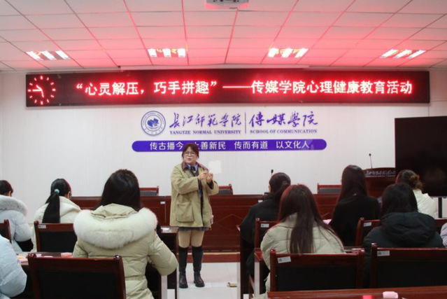 12月26日上午9时,国产探花 在格致楼2308教室举办“心灵解压,巧手拼趣”心理健康教育活动,国产探花 学工办主任兼团委书记王雯带领同学们以拼豆手工活动为载体开展心理解压实践。