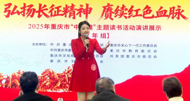 12月27日,重庆市“中华魂”(弘扬长征精神 赓续红色血脉)主题读书活动演讲展示(青年组)在重庆宾馆·太阳城举行。本次活动由中共重庆市委宣传部、市关工委、市委文明办、市教委、市文化旅游委、团市委、市妇联等部门联合主办。