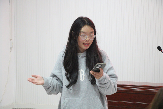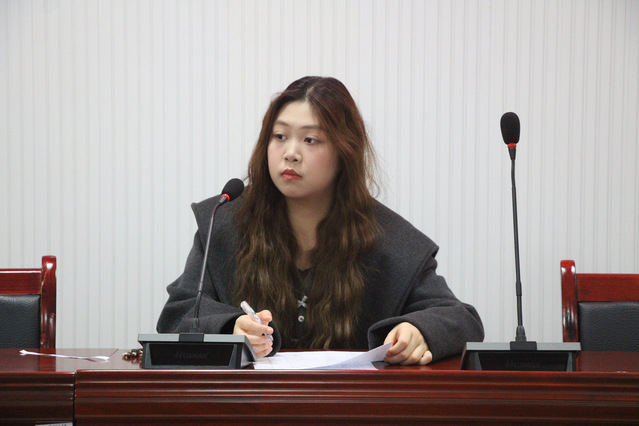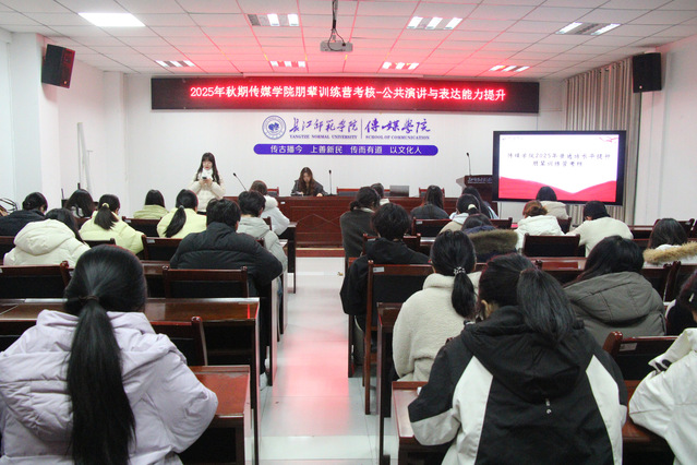 12月29日晚7时,国产探花 朋辈训练营考核——“公共演讲与表达能力提升”在格致楼2308教室开展。国产探花 2023级播音与主持艺术专业5班刘雯汐担任本次考核的评审,来自各二级学院的学员参与。本次考核聚焦学生在真实场景下的语言组织与临场反应。