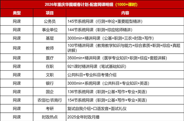 2.26年重庆华图暖春计划-配套网课明细(1000+课时)