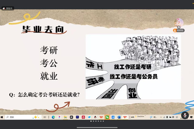 分享会上,张琪围绕考研全流程展开讲解:从毕业去向选择、专业方向对比到院校筛选方法逐一梳理,建议同学们以兴趣为核心理性规划,综合考量地区资源、学校层次、招生人数等关键信息。针对备考资源获取,她分享了资料查找与筛选技巧,并结合亲身经历讲解报班选择的逻辑,指导同学们理性判断机构适配性。她还梳理了考研重要时间节点,分别讲解政治、英语及专业课的阶段学习方法,明确专业课各阶段备考重点。