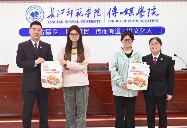 活动围绕“筑牢青春防线 共护国家安全”主题,杨娜结合《中华人民共和国国家安全法》讲解法律定义及16个安全领域,帮助学生明确国家安全范畴,通过网络交友、学术窃密等案例揭示风险,提醒学生严守底线。宣讲结束后,杨娜为学生代表发放国家安全教育主题纪念宣传品,进一步强化宣传教育效果。