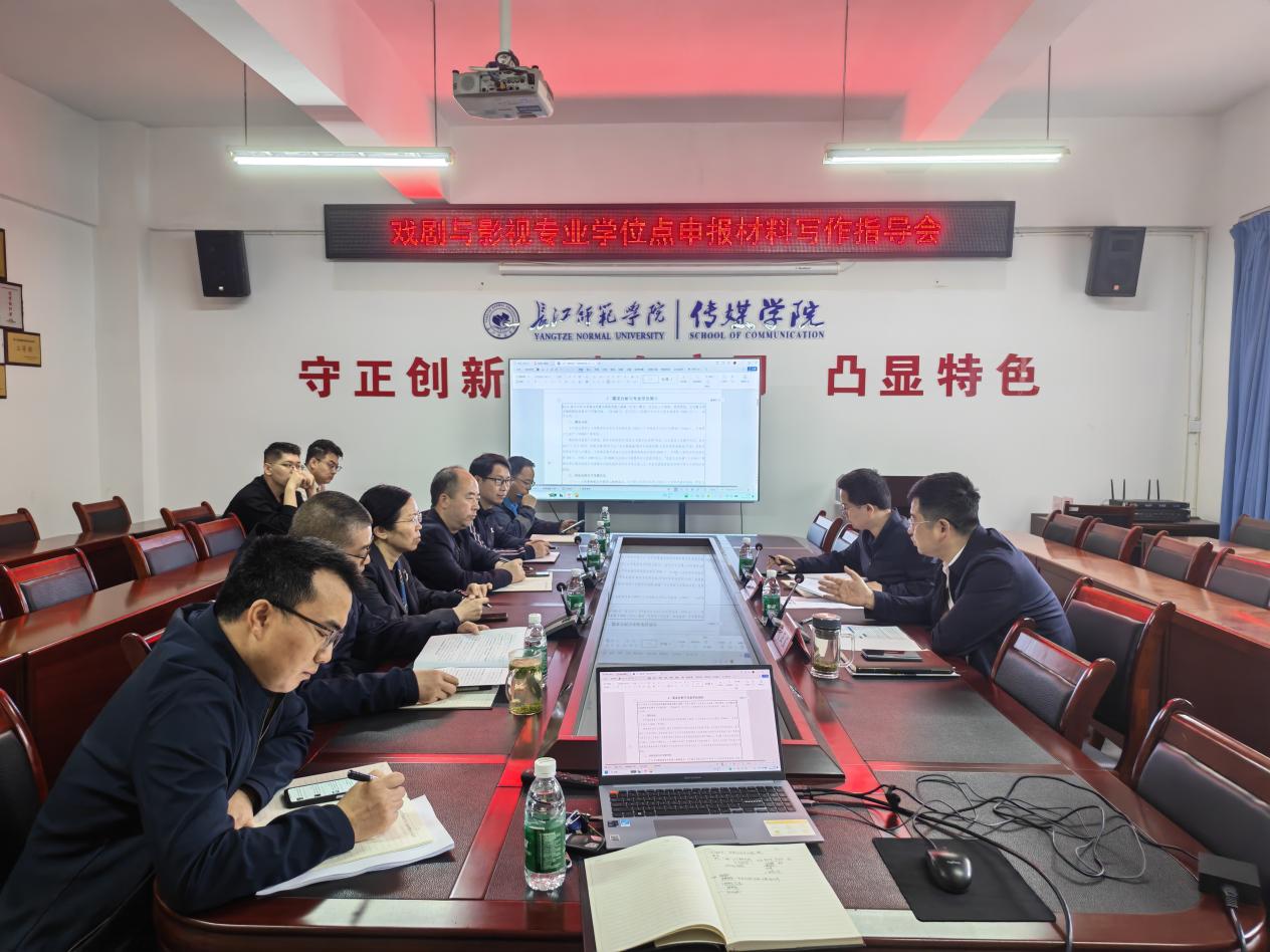2026年4月22日,国产探花 在格致楼2313会议室召开戏剧与影视专业学位申报材料写作指导会。会议邀请电子信息工程学院党委书记兼研究生处副处长谢正发、学科建设科科长彭浩到会指导,国产探花 院长冉明仙、党委书记谢诗茂、副院长汪志平、各系主任及教师代表参加会议。