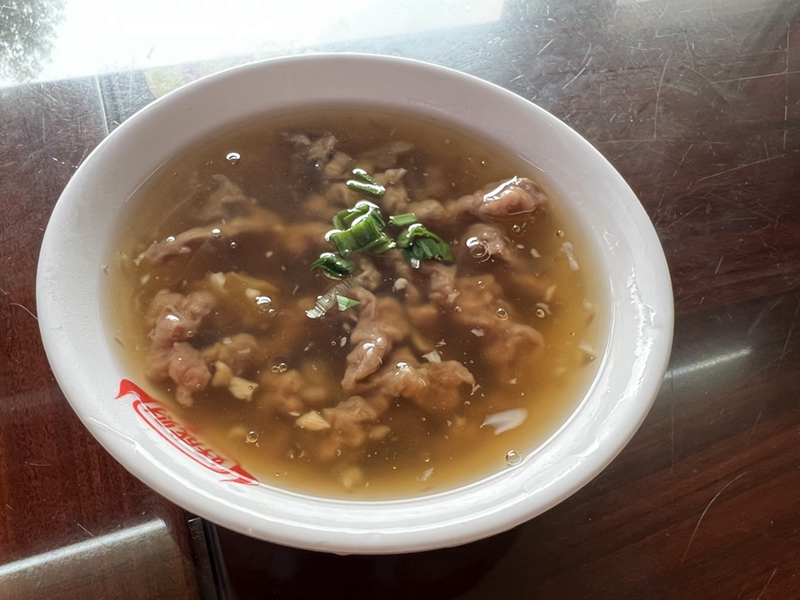 以牛肉为主料。选用牛后腿的后膀肉,先把肉切成厚薄相同的肉片,改刀成条肉丝;加入调料腌渍使肉丝入味;用手工顺时针搅拌肉丝,倒入蛋清和地瓜粉再搅拌,使肉丝更加黏稠;大火将锅中的汤水烧开后,加入少许盐、味精;把搅拌好的牛肉丝放入沸汤水中烧至肉丝熟透,用地瓜粉勾芡,倒入姜丝就可出锅。成菜鲜香嫩滑,既弹性又有嚼劲,汤色清亮顺滑,入嘴回味无穷。