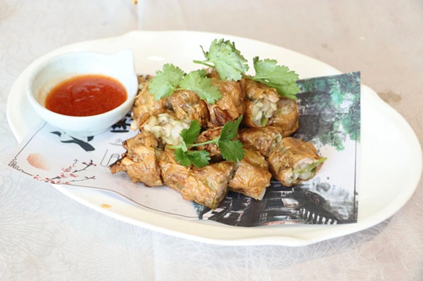鸡卷色泽金黄,外皮酥脆,咬上一口,内里的肉馅鲜嫩多汁,马蹄的清甜与小葱的香气在口中交织,令人回味无穷。