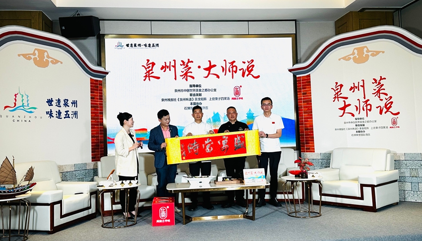 就在专题培训活动前一天,泉州晚报社《泉州味道》推出《宴启刺桐城 烟火融百味》“泉州菜·大师说”专场直播,借助泉州晚报社媒体矩阵端口,让更多人进一步了解泉州美食。当天,世界中餐业联合会名厨委执行主席胡满荣、央视“三星厨师”杜武汉、申创专家顾问杨炜峰围绕“市井十洲宴”“宋元海丝宴”“晋邑古筵之池店状元家宴”三款主题宴,揭秘泉州美食的“分层密码”:市级宴展现多元包容,县区宴浓缩地域特色,镇街宴传承家族记忆。直播中,大师现场烹制,嘉宾“吃播”点评,穿插着宋元商船运粮的历史典故、海上丝绸之路的饮食交融故事,让更多观者意识到:泉州菜的每一味,都是世遗文化的味觉注脚,引导市民和游客于“五一”期间在泉州“循宴尝味”。