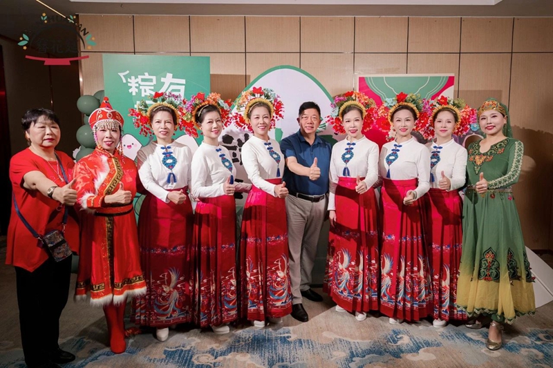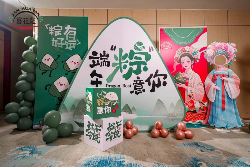 宾客们一踏入酒店,便被*簪花长廊”包围——头顶悬垂闽南簪花与艾草香枝,耳畔是悠扬的南音伴奏。每位女士获赠簪花头饰和艾草香枝,瞬间端午的氛围感拉满。