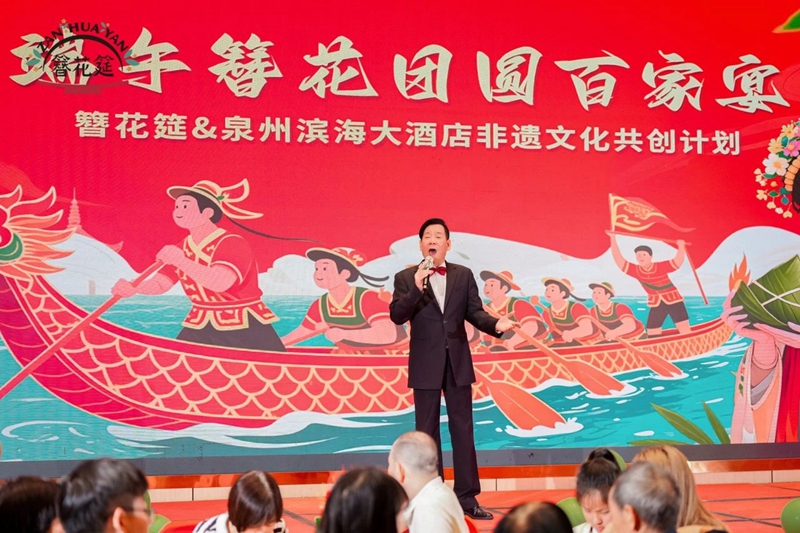 5月31日,簪花筵携手泉州滨海大酒店,打造了泉州首场“端午簪花百家宴”,本次活动是簪花筵与授权餐厅非遗文化共创计划的一次尝试,300位宾客共赴这场融合非遗美学、闽南风味与端午民俗的文化盛宴,现场簪花如海、南音绕梁,仿佛穿越回宋元时期的“东方第一大港”。