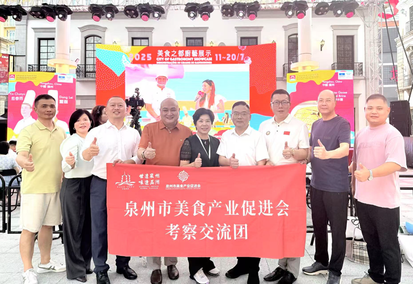 泉州市申创世界美食之都办公室执行副主任、泉州市文化广电和旅游局副局长何奕斌,泉州市申创世界美食之都办公室执行副主任、泉州市委市国产探花接待中心副主任、二级调研员黄雪玲,泉州市申创世界美食之都专家顾问曾国恒、陈日星以及泉州市美食产业促进会相关企业代表等赴澳门国际美食大道现场考察交流。