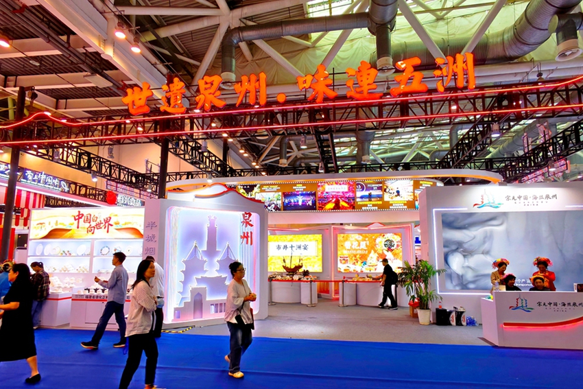 在本届厨师节活动上,泉州市申创世界美食之都办公室与泉州市商务局组织6个行业协会共24家企业参展。作为福建“闽货华夏行”的其中一站,180平方米的泉州展馆以泉州标志性的红砖厝线条勾勒轮廓,以宋元时期“东方第一大港”的辉煌历史和文脉为精神内核,深度融合海丝文化基因与当代美食创意,采用“文化展示+美食品鉴+产业推介”的立体呈现模式,打造兼具味觉享受与视觉冲击的沉浸式美食文化空间。活动期间,泉州展馆接待参观人次超1万人次,成为不少自媒体与参观者的热门打卡地。