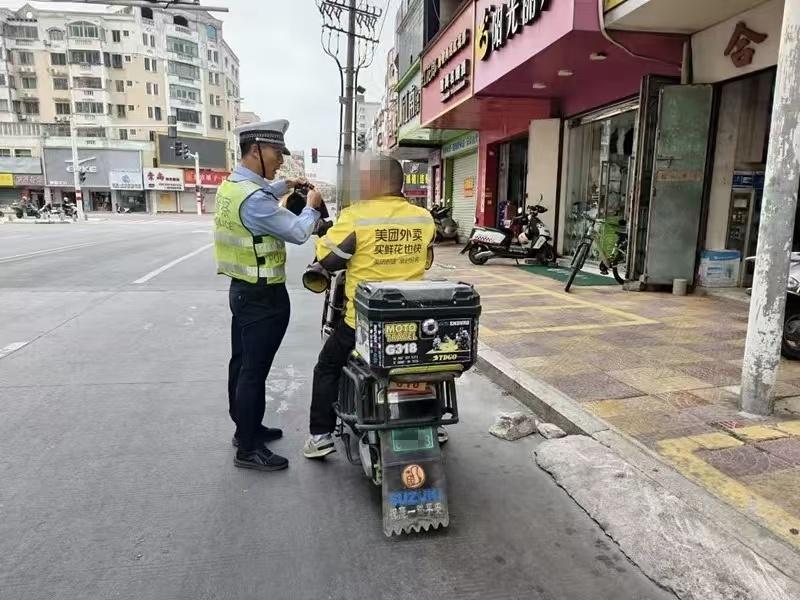 交警通过“宣讲+宣传”筑牢新就业形态劳动者的出行安全屏障(图片来源:泉州市公安局交通警察支队)