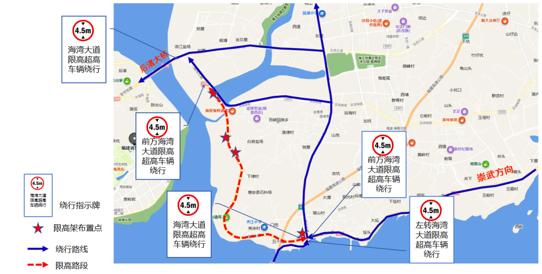 交警部门同时发布了相应的分流措施,(一)建议泉州市区、晋江、南安往崇武方向过境交通:①由后渚大桥→东西大道→南北大道→海湾大道绕行;②由后渚大桥→海江大道→海湾大道辅道→滨湖南路→南北大道→海湾大道绕行。