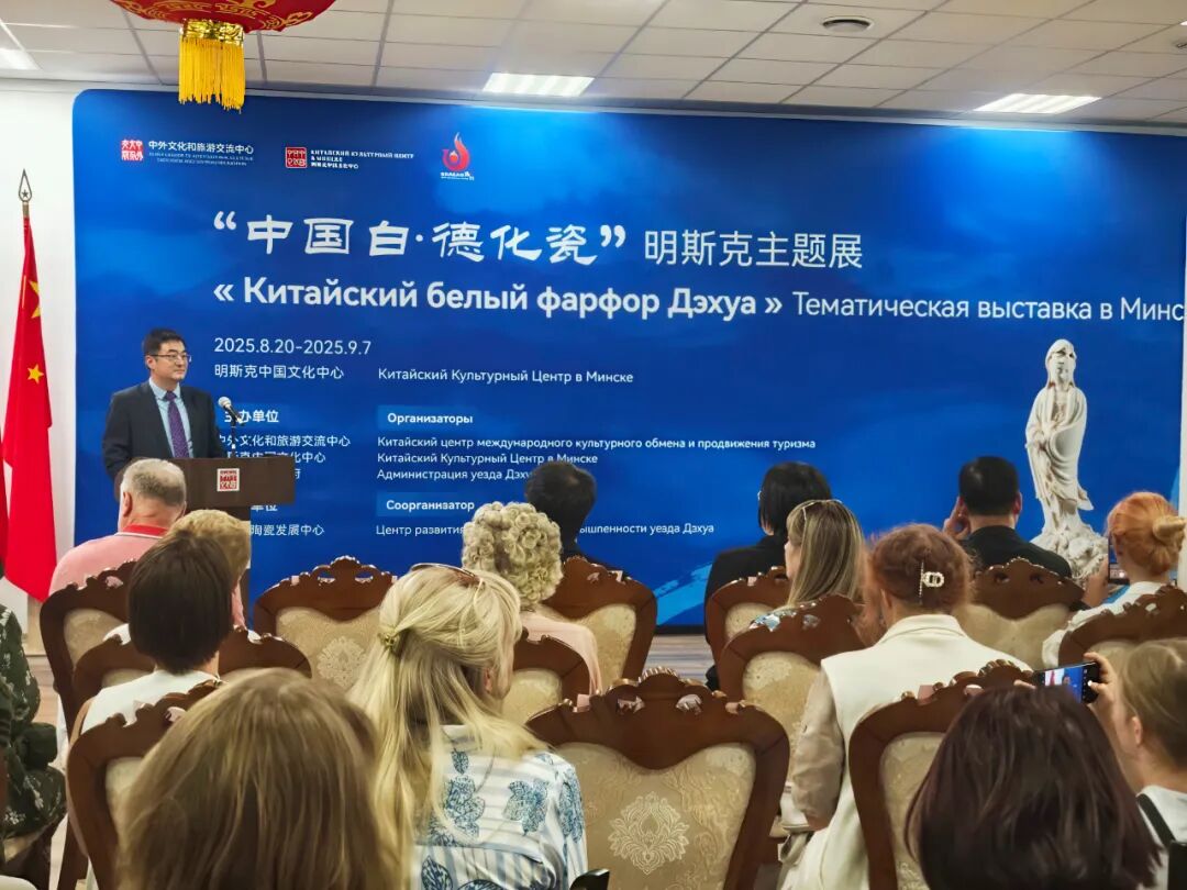 “中国白·德化瓷”明斯克主题展在明斯克中国文化中心正式拉开帷幕。(德化县发改局 供图)