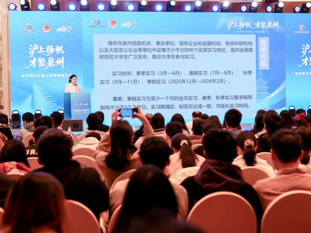 11月25日,“沪上扬帆·才聚泉州”泉州招才引智上海现场推介活动成功举办。本次活动由泉州市委人才办、泉州团市委、泉州市人社局联合主办,活动通过主场推介、校园宣讲、岗位发布、交流互动等多元形式,向上海高校学子全面展示了泉州的发展机遇与城市魅力。