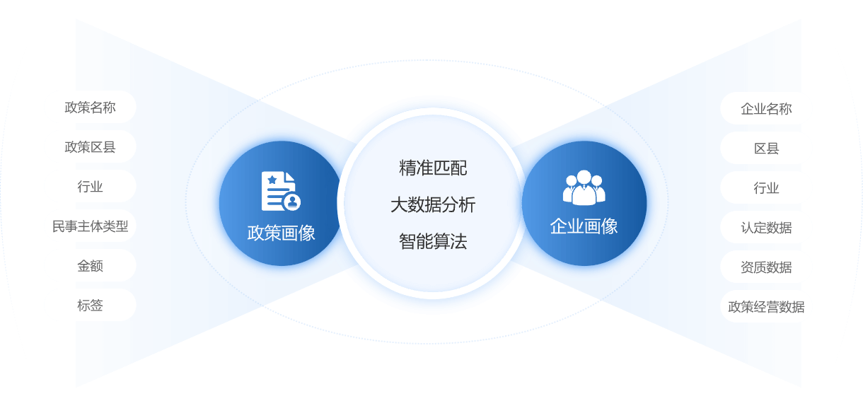 政策作为“政策找企”项目中的另一重要组成部分,其重要性是不可言喻的。通过政策管理、审核、解读、条件匹配等内容的完善,来实现政策与企业匹配的功能。